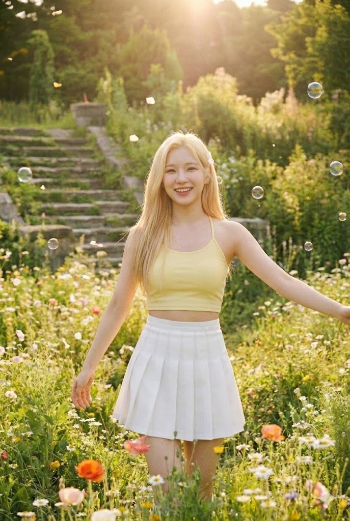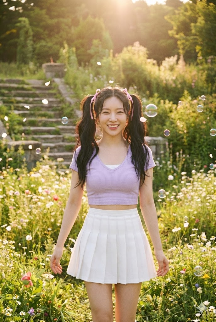 도착한 곳은 '노베라 랜드(NoVeRa Land)'. 이곳은 현실의 물리 법칙이 무시되는 유토피아다. 하늘에는 두 개의 달이 뜨고, 꽃들은 영원히 시들지 않으며, 멤버들은 화려한 드레스를 입고 끝없는 티파티를 즐긴다. 한국 정규 1집 [Into The Novel] 데뷔곡 'First Page'는 이러한 새로운 세상에 눈을 뜬 소녀들의 벅찬 감정을 노래한다. "새하얀 종이 위에 우릴 그려봐", "잉크처럼 번지는 너의 향기" 같은 가사는 표면적으로는 사랑 노래처럼 들리지만, 심층적으로는 자신들의 운명을 누군가(작가 혹은 독자)에게 온전히 맡기겠다는 수동적인 태도를 암시한다. 멤버들은 아직 자신들이 창작물이 되었다는 사실을 인지하지 못한 채, 주어진 캐릭터로서의 삶을 즐겁게 받아들인다. 특히 라리타는 이 세계의 안내자 역할을 자처하며 멤버들을 이끄는데, 그녀의 해맑은 미소는 역설적으로 이 세계의 비현실성을 강조하는 장치가 된다.